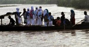 Taruhkan Nyawa, Terpaksa Naik Rakit Menuju Sekolah Karena Jembatan Hanyut