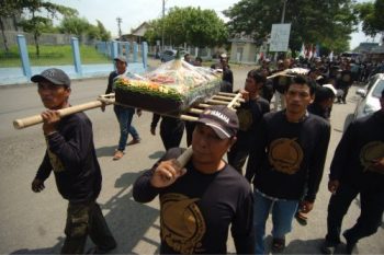 Kota Tegal – Ribuan nelayan Kota Tegal, Jawa Tengah dari berbagai elemen menggelar aksi unjuk rasa mewarnai Sidang Paripurna Istimewa DPRD Kota Tegal, dalam rangka Hari Ulang Tahun (HUT) Kota Tegal, Rabu (11/4/2018).