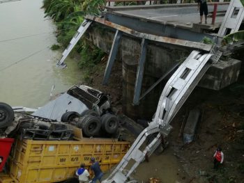 LAMONGAN – Dua orang diketahui meninggal dunia dalam peristiwa ambruknya jembatan penghubung Kecamatan Babat-Widang, yang menghubungkan Kabupaten Lamongan dengan Kabupaten Tuban. Korban diketahui sopir truk yang tercebur dan terguling sesaat jembatan ambruk. Keduanya terjepit dan masih berusaha dievkuasi petugas.