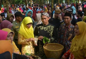 Batang – Ribuan masyarakat Batang berbondong -bondong memenuhi Hutan Kota Rajawali Batang untuk mengikuti kegiatan Minggonan Jatinan yang di gelar Pemkab Batang, Minggu (22/4/2018). Acara itu untuk melestarikan makanan tradisional dan menghidupkan geliat usaha mikro kecil menengah (UMKM).