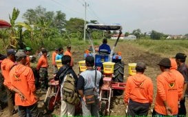 Brebes – Pelatihan Tanam Jagung Modern dengan menggunakan Alsintan TR-4 (Crown) tanam jagung diberikan kepada anggota Gabungan Kelompok Tani (Gapoktan) Maju Makmur Kecamatan Songgom, serta 10 orang Perwakilan Poktan dari Kabupaten Tegal.