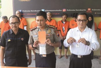 Dijelaskannya, kesembilan tersangka tersebut yakni Hendra (41) warga Serengan, Retno (41) warga Banjarsari, Pramudiyanto (41) warga Karanganyar, Tukiranto (47) warga Pasar Kliwon, Dennis Suryanto (41) warga Banjarsari, Endang Ernawati (31) warga Pasar Kliwon, Mursito (47) warga Pasar Kliwon, Fahtur Prasetiyo Putro (22) warga Pasar Kliwon dan Agus Prihtiawan (42) warga Kartasura, Sukoharjo.