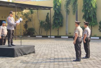 Pekalongan – Upacara kenaikan pangkat penghargaan setingkat lebih tinggi digelar dan diberikan kepada Aiptu Siswoto dan Iptu Slamet Samaun, Selasa (5/6/2018). Upacara digelar di lapangan Mapolres dan dipimpin, Kapolres Pekalongan Kota AKBP Ferry Sandy Sitepu.