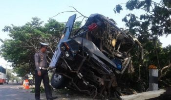 Demak – Kecelakaan maut terjadi di Pantura Desa Wonorejo Kecamatan Karanganyar, Kabupaten Demak, Selasa (10/7/2018). Sebuah bus jurusan Jakarta-Surabaya mengalami kecelakaan tunggal. Bus hilang kendali dan menghantam sebuah pohon.