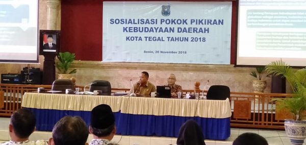 Sosialisasi menghadirkan narasumber Kabid Pembinaan Kebudayaan Disdikbud Provinsi Jawa Tengah, Drs Joko Nugroho Wicaksono MA, Antropolog Unpad, Tim Penyusun Strategi Kebudayaan Kemdikbud, Drs Inang Winarso dan Budayawan dan Anggota Komisi I DPRD Kota Tegal, H Sisdiono Akhmad.