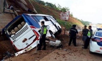 Batang – Sebuah bus berisi rombongan jamaat gereja asal Tanjungpriok baru saja melakukan safari rohani ke Jawa Timur mengalami kecelakaan di tol Batang-Semarang, Minggu (6/1/2019). Bus yang baru saja mengantarkan rombongan safari rohani ke Jawa Timur masuk parit.