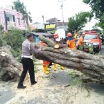 Tidak lama kemudian Tim BPBD Kota Tegal dan Personil Polsek Tegal Barat tiba mengevakuasi pohon.