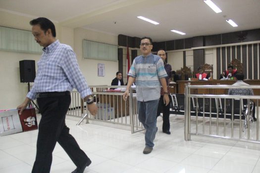 R Dody Kristyanto (kiri) dan Suhantoro usai diperiks di pengadilan sebelumnya.
