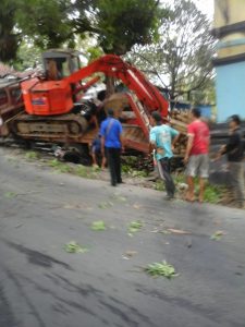 SEMARANG – Truk pengangkut Backhoe mengalami kecelakaan di Jalan Kolonel HR Hardijanto, Sampangan, Gajahmungkur, Kota Semarang, atau tanjakan menuju arah Universitas Negeri Semarang (Unnes), Senin (23/12).