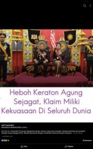 “Keraton Agung Sejagat merupakan kerajaan atau kekaisaran dunia yang muncul karena telah berakhir perjanjian 500 tahun yang lalu, terhitung sejak hilangnya Kemaharajaan Nusantara, yaitu imperium Majapahit pada 1518 sampai dengan 2018,” katanya.far