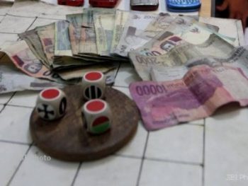 Barang bukti yang disita di antaranya, spanduk beks berukuran + 100 cm x 70 cm, sejumlah mata dadu, lilin, lampu LED dan aki serta uang tunai Rp 66 ribu.
