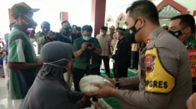 Pekalongan – Kepolisian Resor Pekalongan Kota bersama Komando Distrik Militer 0710/Pekalongan, Jawa Tengah, dalam rangkaian kegiatan bakti sosial peduli COVID-19 menyalurkan bantuan beras pada warga miskin dan jamaah Masjid Wali Songo dan Masjid Aulia, Sabtu (9/1/2021) siang.