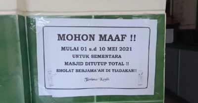 “Benar sementara ditutup dulu selama 10 hari. Mulai 1 Mei sampai dengan 10 Mei mendatang. Sementara ditutup, masjid dilakukan penyemprotan disinfektan setiap hari,” ujar Jatmiko.