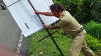 Banjarnegara – Video pria tengah mencabut papan reklame viral di media sosial. Pria dengan memakai seragam aparatur sipil negara (ASN) terlihat emosi saat mencabuti papan reklame tersebut.