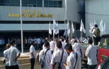 Batang – Seratusan perangkat desa yang tergabung dalam Persatuan Perangkat Desa Indonesia (PPDI) Kabupaten Batang melakukan unjuk rasa di depan gedung DPRD setempat menolak Peraturan Bupati Batang Nomor 09/2016 mengenai syarat minimal pendidikan terakhir setingkat sekolah menengah atas, Rabu (1/12/2021).