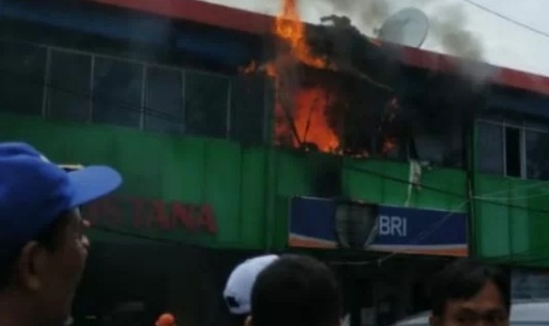 Kudus– Kantor Bank BRI Unit yang menempati salah satu ruko di Pasar Kliwon, Jalan Jenderal Sudirman Kudus, Jawa Tengah, Kamis (13/1/2022), terbakar.