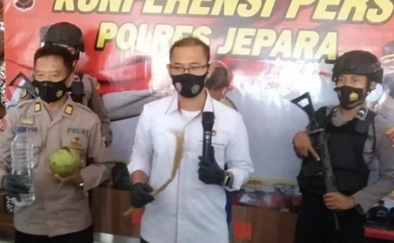 Menurut Kapolres Jepara AKBP Warsono didampingi Kasat Reskrim AKP Muhammad Fachrur Rozi, di Jepara, Senin (14/2/2022), pelaku berhasil ditangkap di rumahnya beserta sejumlah barang bukti untuk praktik perdukunan, mulai dari gayung, satu buah kelapa hijau, botol air mineral, satu ikat pohon padi yang kering, dua bungkus kembang tiga warna, dan dua ikat akar-akaran.