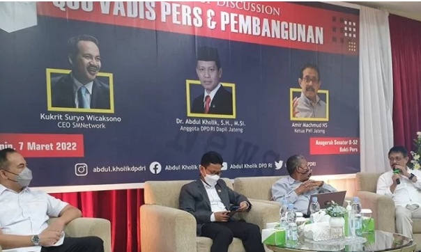 “Wartawan tidak cukup hanya dengan penguasaan teknis (jurnalistik) tapi harus punya hati, memiliki kepatuhan pada doktrin (etika) jurnalisme,” katanya dalam Kelompok Diskusi Terarah (Focussed Group Discussion) bertajuk “Quo Vadis Pers dan Pembangunan” di Gedung DPD Jawa Tengah di Semarang, Senin (7/3/2022).