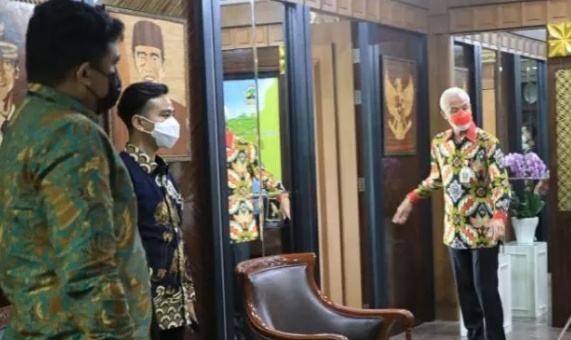 Usai bertemu, Ganjar terlihat mendampingi dan mengantar Gibran serta Bobby ke luar dari ruang kerjanya.