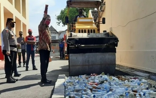 Minuman keras beralkohol tersebut dimusnahkan dengan cara digilas stoom walls sebagai bentuk bersama Forkomimda Surakarta untuk mewujudkan Solo menjadi kota bebas pekat.