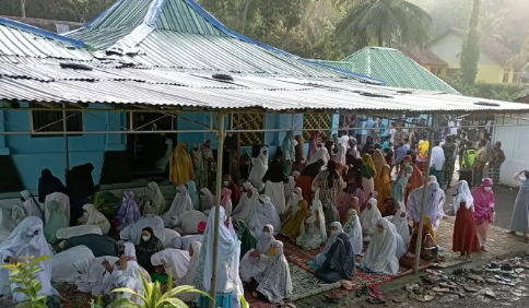 Selanjutnya, jamaah Shalat Id berkumpul di halaman masjid untuk bersilaturahmi bersama seluruh warga termasuk yang telah melaksanakan Shalat Id pada hari Senin (2/5).