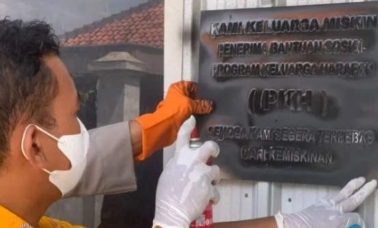 Labelisasi rumah penerima bantuan itu yang dipasang di dinding depan atau tembok ini, bertuliskan “Kami Keluarga Miskin Penerima Bantuan Sosial PKH, Semoga Kami Segera Terbebas dari Kemiskinan”.