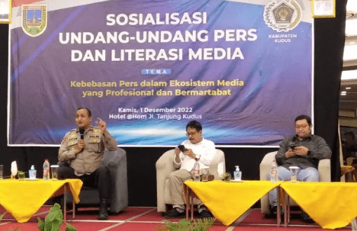 Kudus – PWI Kabupaten Kudus, Jawa Tengah, menggelar sosialisasi Undang-Undang Nomor 40 tahun 1999 tentang Pers dan Kode Etik Jurnalistik (KEJ) dengan sasaran organisasi perangkat daerah (OPD) dan masyarakat luas untuk memberi pemahaman dan pengetahuan terkait kinerja wartawan maupun KEJ, Kamis.