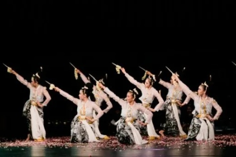 Semarang – Gelegar suara gamelan gendhing sekati pesisiran menandai langkah kaki sembilan penari putri Batak, Endel, Dada, Gulu, Endel Weton, Apit Buri, Apit Ngarep, Apit Meneng, Boncit berbalut busana pesisiran batik Semarangan bernuansa putih memasuki Pagelaran 4 saka penyangga Joglo.
