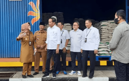 Sukoharjo – Presiden Joko Widodo (Jokowi) menyalurkan Cadangan Beras Pemerintah (CBP) sebagai bantuan pangan tahun 2023 di Perum Bulog Pusat Distribusi di Kartasura, Kabupaten Sukoharjo, Jawa Tengah, Senin.