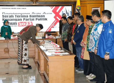 Penandatanganan serah terima bantuan keuangan partai politik itu dilakukan Gubernur Jateng Ganjar Pranowo bersama perwakilan dari sembilan partai politik di Semarang, Kamis.