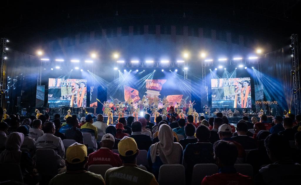 Semarang – INFOPlus. Pekan Olahraga Nasional (Pornas) Korps Pegawai Republik Indonesia (Korpri) XVI tahun 2023 resmi dibuka di GOR Jatidiri, Semarang, Jumat (14/7) malam. Duet Menteri PUPR Basuki Hadimuljono dan Gubernur Jateng Ganjar Pranowo menyanyikan lagu Bento meriahkan pembukaan Pornas.