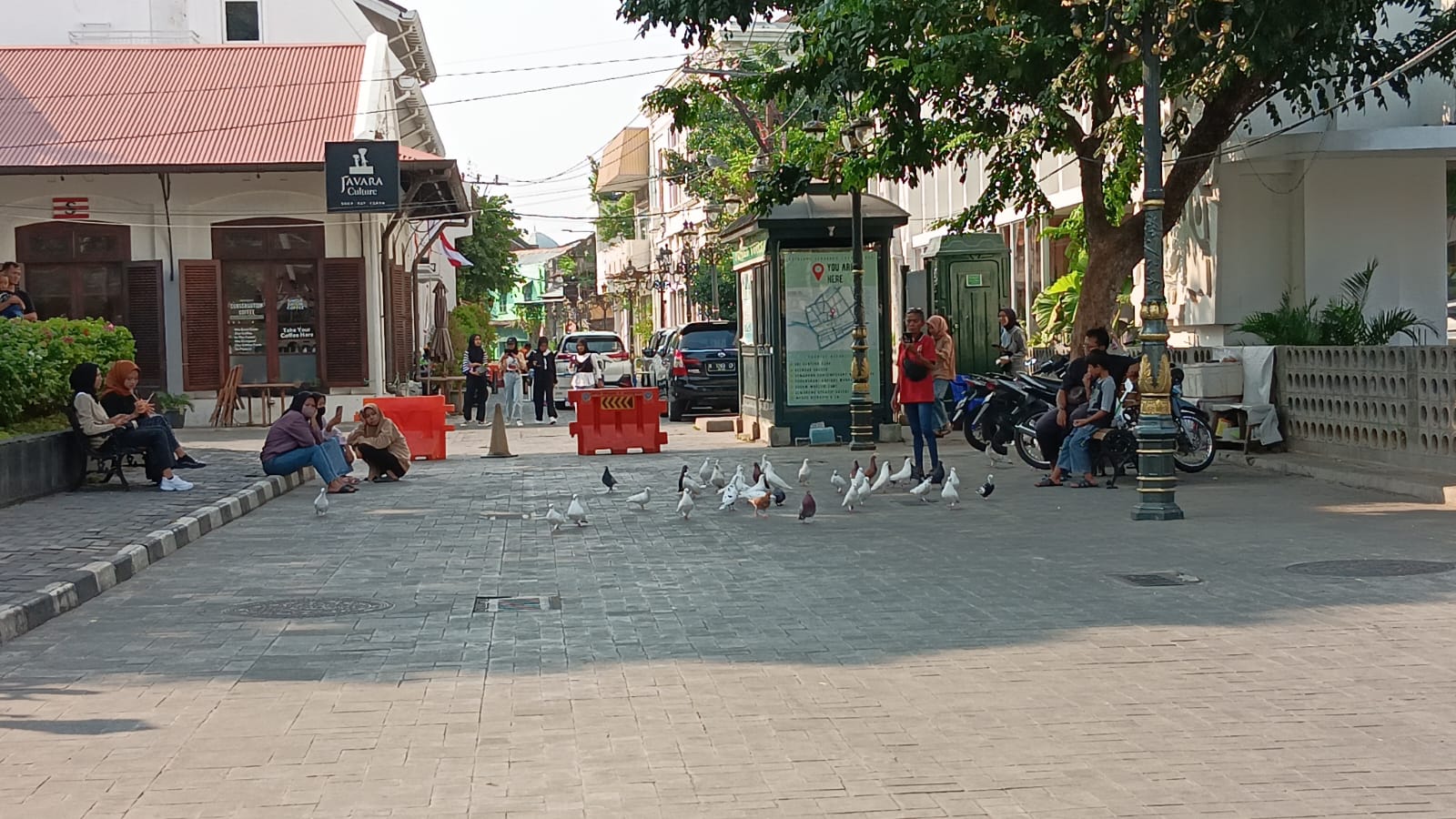 Para pengunjung terlihat menikmati keindahan gedung-gedung tua dengan berjalan kaki, sembari mengabadikan foto, namun ada pula yang terlihat bersantai di bangku taman sembari bercengkraman.