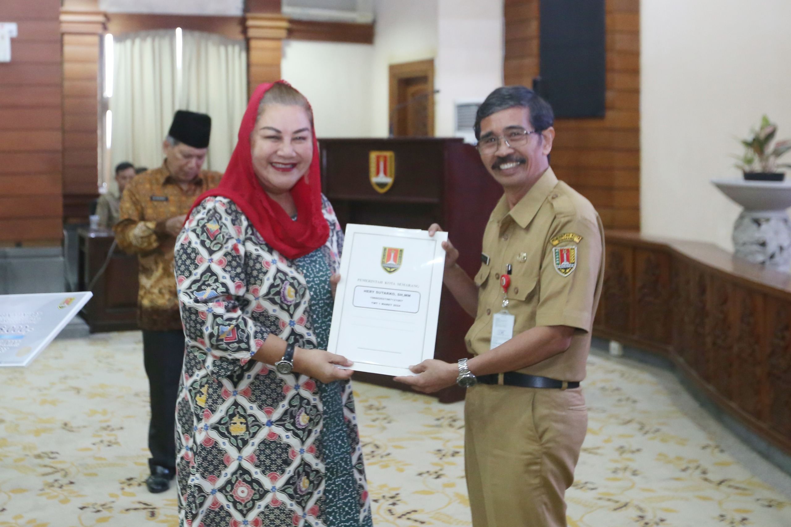 Kepala BKPP Kota Semarang, Joko Hartono menyampaikan terkait penyerahan SK ini, ada dari eselon II yakni Nana Storada, eselon III ada empat orang, eselon IV ada 18 orang, jabatan fungsional ada 55 orang dan pelaksana ada 31 orang.