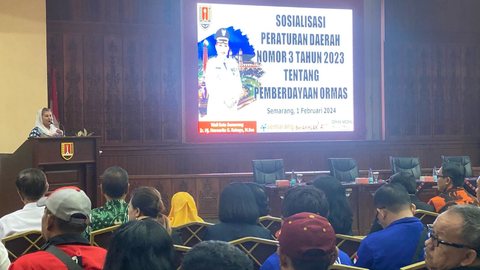 Hal itu disampaikan Mbak Ita dalam agenda sosialisasi Peraturan Daerah (Perda) No 3 Tahun 2023 tentang Pemberdayaan Ormas di Ruang Lokakrida Balai Kota Semarang, Kamis (1/2). Hadir dalam acara itu perwakilan ormas di Kota Semarang.