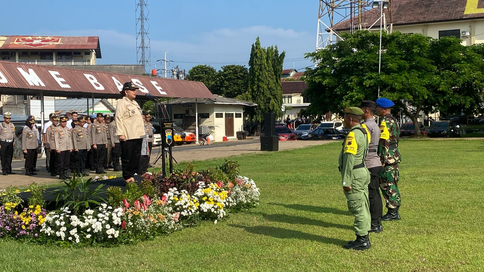 Wali Kota Semarang, Hevearita Gunaryanti Rahayu pimpin Apel Pergeseran Pasukan Pengamanan Tahap Pungut dan Hitung Suara Pemilu 2024 Operasi Mantap Brata Candi di Polrestabes Semarang, Selasa (13/2). (Foto: Dok)
