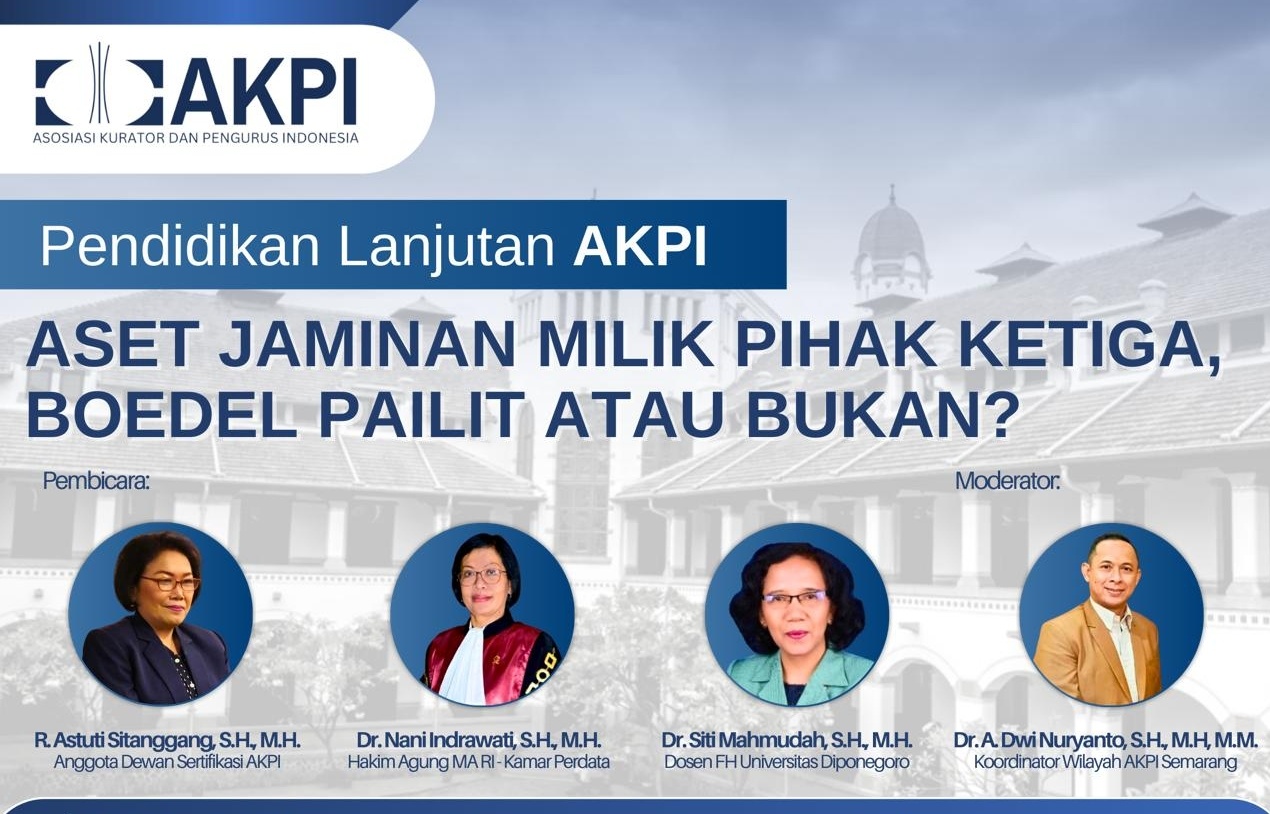 “Ada gap antara peraturan yang ada dengan pelaksanaan pengurusan kepailitan. Di beberapa kasus, aset jaminan milik pihak ketiga dinyatakan masuk boedel pailit, tapi ada putusan MA yang menyatakan bukan boedel,” imbuh Koordinator AKPI wilayah Jateng-DIY itu