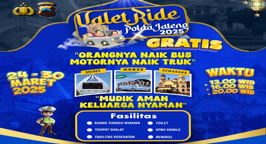 Program Valet Ride hadir sebagai bentuk kepedulian Polda Jateng dalam mendukung mudik aman dan nyaman, sekaligus mengurangi risiko kecelakaan bagi pengguna sepeda motor. Dengan layanan ini, pemudik dapat merasakan perjalanan yang lebih nyaman, aman, dan bebas lelah, sehingga momen pulang ke kampung halaman menjadi lebih menyenangkan.