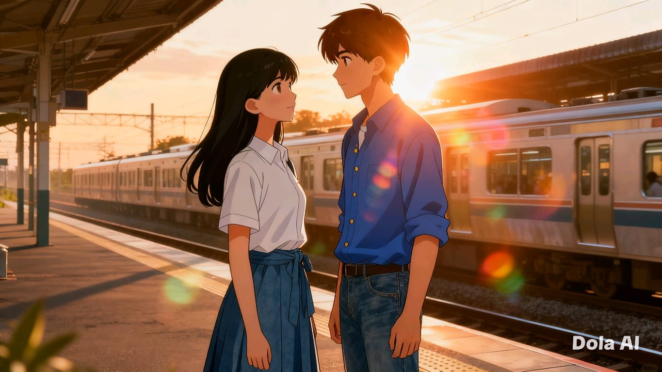 “Sudah dengar apa yang orang tuamu katakan, kan?” ucap Rafiq dengan lembut, menyeka air mata Maya dengan ujung bajunya. Lampu stasiun yang berwarna kuning menerangi mereka di tengah peron yang sunyi, hanya diiringi suara kereta api yang melintas di jalur sebelahnya.