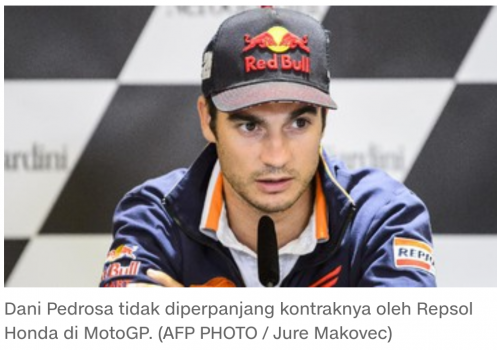 Jakarta — Misteri masa depan Dani Pedrosa di MotoGP mulai terkuak setelah pebalap asal Spanyol itu dikabarkan akan bergabung dengan tim asal Austria KTM di MotoGP Selengkapnya